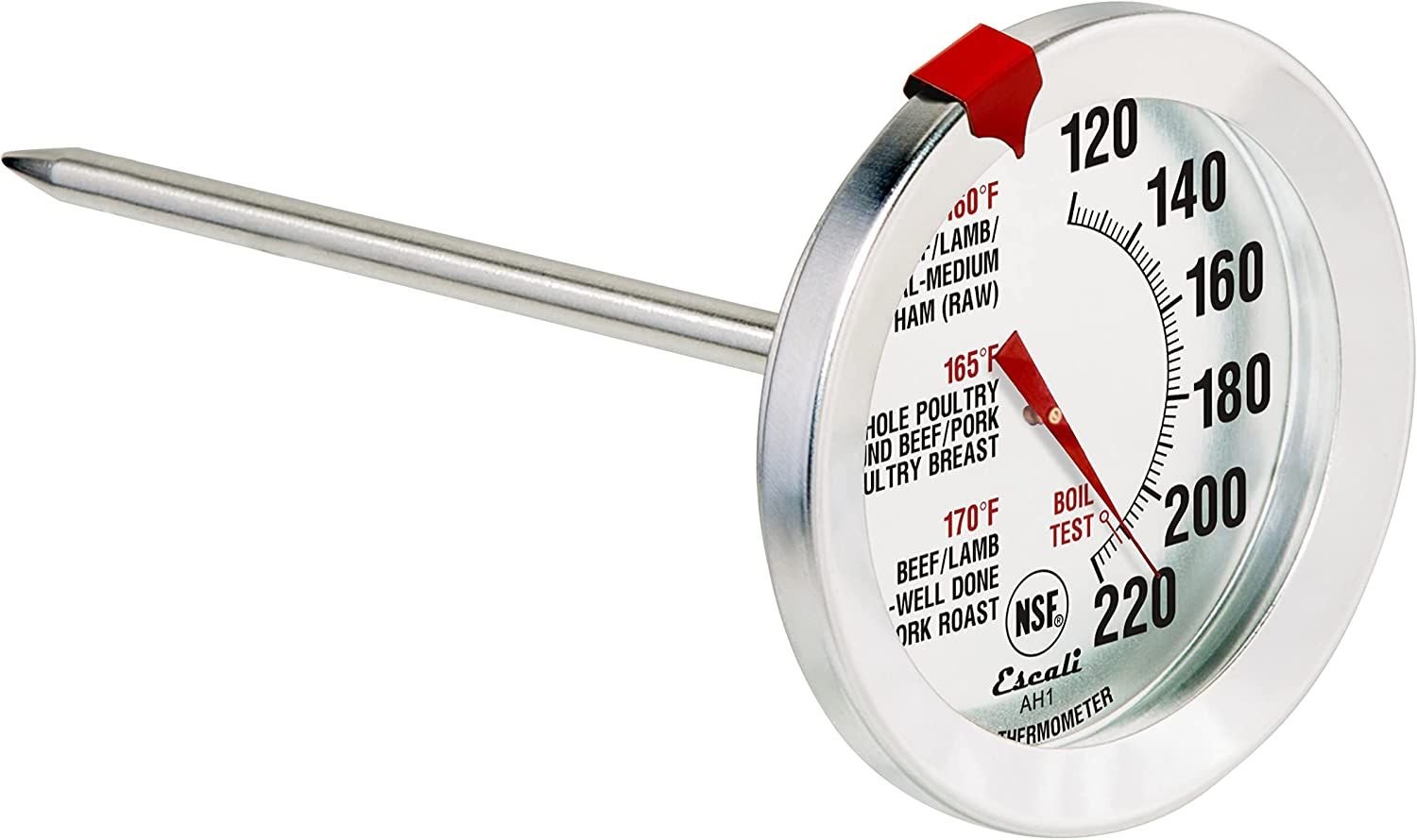 Escali AH1 Stainless Steel Oven Safe Meat Thermometer; Extra Large 2.5-inches Dial; Temperature Labeled for Beef; Poultry; Pork; and Veal Silver NSF C
