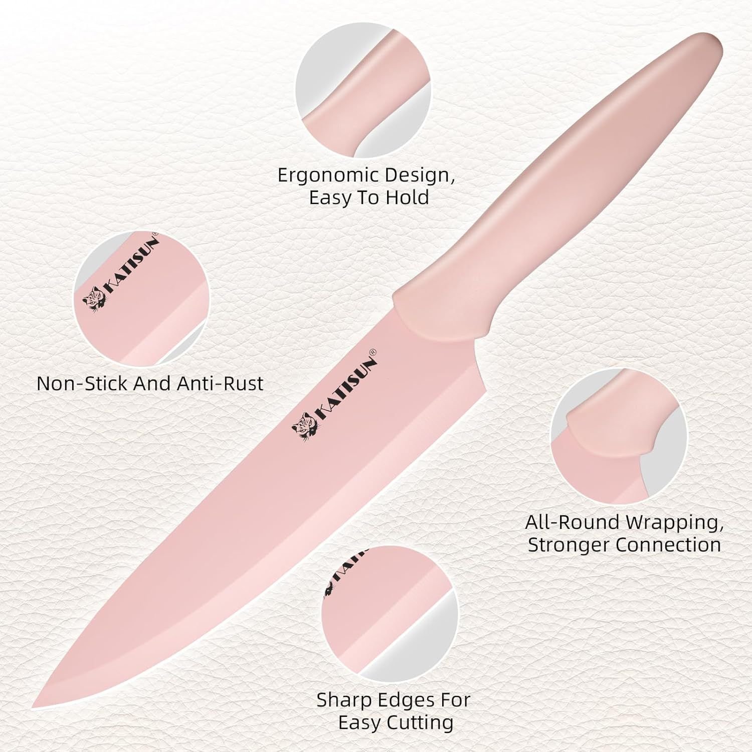 14 Pieces Fancy Pink Coding Kitchen Knife Set, No Rust, and Super Sharp Cutlery Knife Set with Wooden Stand and Kitchen Scissors for Family and Restaurant