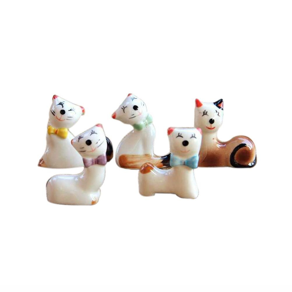 5Pcs Kitten Chopstick Holder Rest Ceramics Desk Decorative Animal Spoon Fork Knife Stand