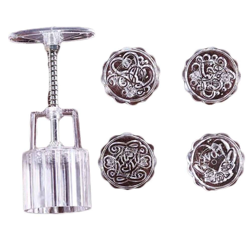 4 Stamps Moon Cake Mold Small Cakes Pastries Mold Plastic DIY Baking Mold 50g