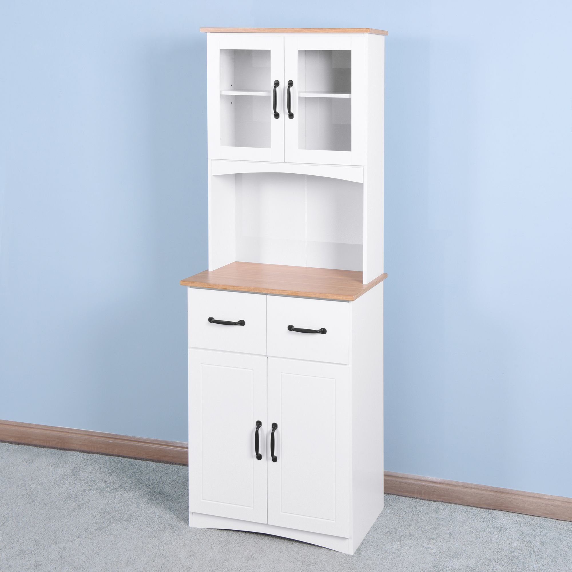 Product Name | Wooden Kitchen Cabinet White Pantry Room Storage Microwave Cabinet with Framed Glass Doors and Drawer |