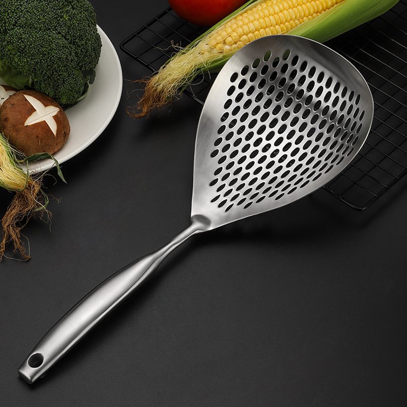 1pc 304 Stainless Steel Slotted Spoons For Cooking; Skimmer Slotted Spoon; Metal Filter Spoon With Holes; Kitchen Tool