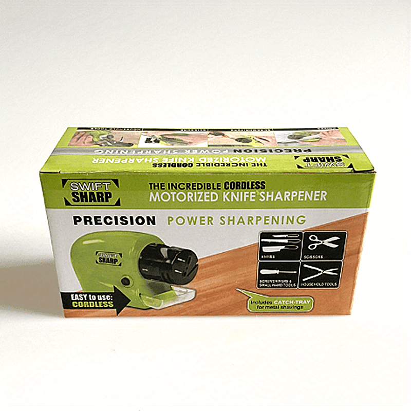 Features: *1. Design: Compact; Compact And Easy To Store. *2. Easy To Use: Professional Electric Sharpener; Sapphire Shape Rotating At High Speed And Sharpening Blade; Easy To Sharpen Without Any Effort. *3. Wireless Operation: Powered By 4 AA Batteries; Wireless Operation Will Not Cause Wiring Chaos And Is Convenient To Use.